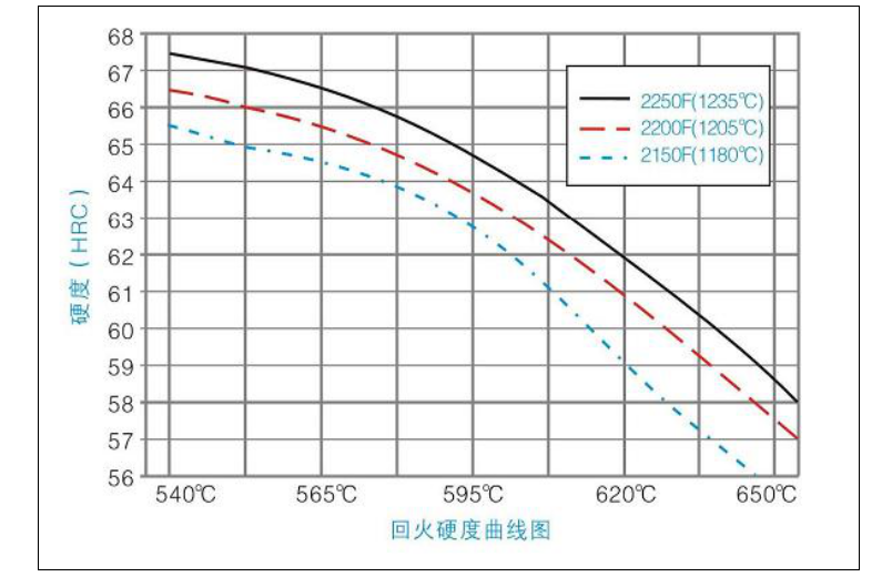 ●奧氏體化:1165-1235°С,為達(dá)到66-68HRC推薦1220-1235°С。